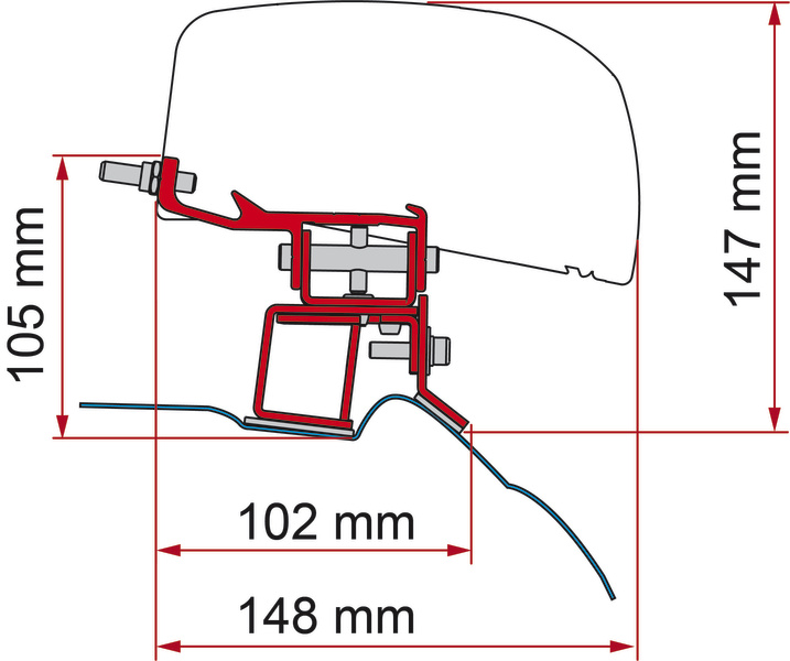 Na pripevnenie strešnej markízy F40van sa dva držiaky pripevnia k vozidlu bez vŕtania.