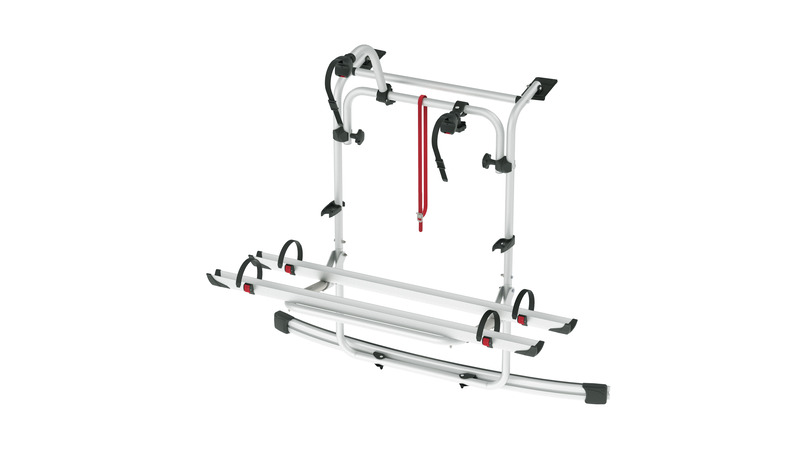 Pojme až 4 bicykle. Horná kĺbová konštrukcia umožňuje presné nastavenie polohy bloku na upevnenie bicyklov, zatiaľ čo praktický spodný upínací systém umožňuje bezpečné pripevnenie prepravovaného bicykla k vozidlu. Špeciálne tvarované držiaky sú pripevnené k výstužným bodom na zadných dverách. Robustná nosná konzola z eloxovaného hliníka zaručuje optimálnu odolnosť voči zaťaženiu.Vhodný pre: