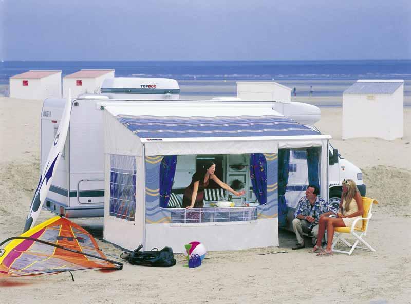 Bočné panely pre Omnistor 8000 chránia pred vetrom a poveternostnými vplyvmi. Sú vhodné pre montážnu výšku 245 až 259 cm. Spolu so samostatne dostupnou prednou časťou tvoria bočné panely priestranný obytný priestor pred vozidlom.