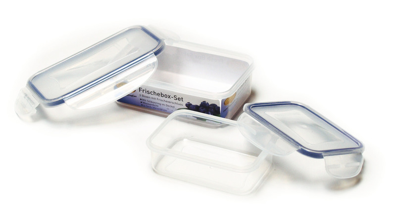 2 boxy na skladovanie potravín s rýchloupínacími uzávermi na všetkých stranách a silikónovým krúžkom vo veku. Boxy sú ideálne na syr, salámy a maslo.Údaje o výrobku: