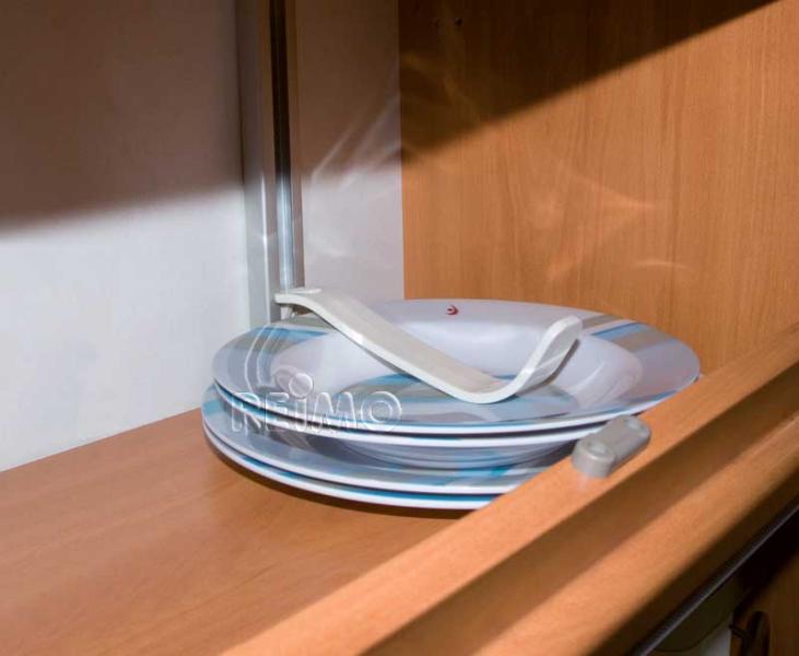 Jednoduchý, ale účinný držiak na riad na bezpečné uchytenie tanierov, tanierov alebo iného riadu v obytných vozidlách alebo karavanoch. Zabráni sa tak hrkaniu alebo poškodeniu.