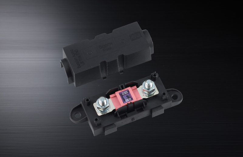 Plne izolovaný držiak poistiek pre vysoko zaťažené poistky na ochranu veľkých záťaží alebo vysoko zaťažených obvodov. Držiak poistiek môže byť priehradový a je vybavený skrutkami so závitom M8 na oboch stranách. Držiak poistiek s vysokým zaťažením na ochranu veľkých záťaží. Vhodné pre 12 V a 24 V.