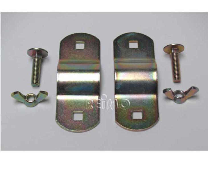 Dvojitá rúrková svorka Ă22+25 mm s príslušnými skrutkami a krídlovými maticami. 2 kusy