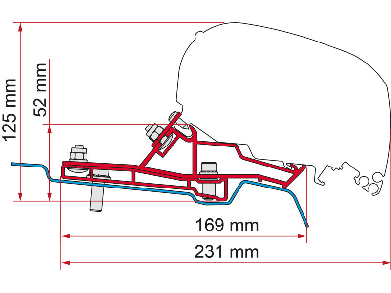 Sada držiakov Fiamma na upevnenie markízy F80s na vozidlá Ford Transit H2 L3. Len pre vozidlá s pravostranným riadením. Táto súprava sa skladá z držiaka s dĺžkou 320 cm.