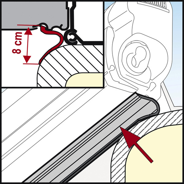 Pre markízy F 45 S so vzdialenosťou medzi kazetou a vozidlom so zvýšenou montážou, dostupné v metráži.