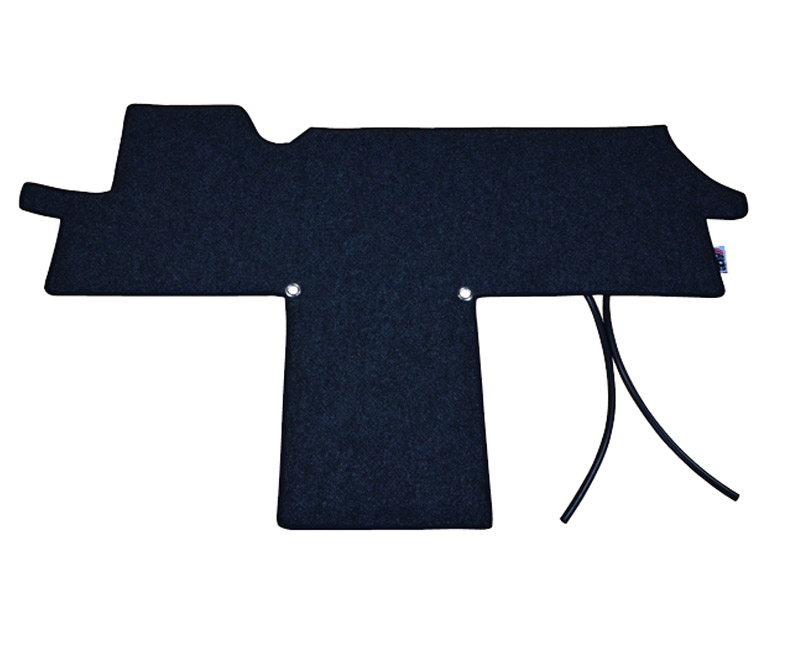 Podlahová vykurovacia rohož do kabíny vodiča v obytných vozidlách alebo karavanoch. Vyhrievacia rohož je vyrobená z materiálov používaných v priemysle úžitkových vozidiel.PU pena je vodoodpudivá a odolná voči teplotám do 90 °C. 12 mm hadicové prípojky na pripojenie ku konvektorovému systému.