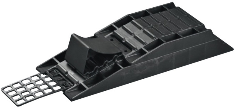 Rôzne terény si často vyžadujú rôzne výšky, preto je možné použiť 1 nízky klin alebo 2 zvýšené kliny. S nájazdovou pomôckou a parkovacou zarážkou.