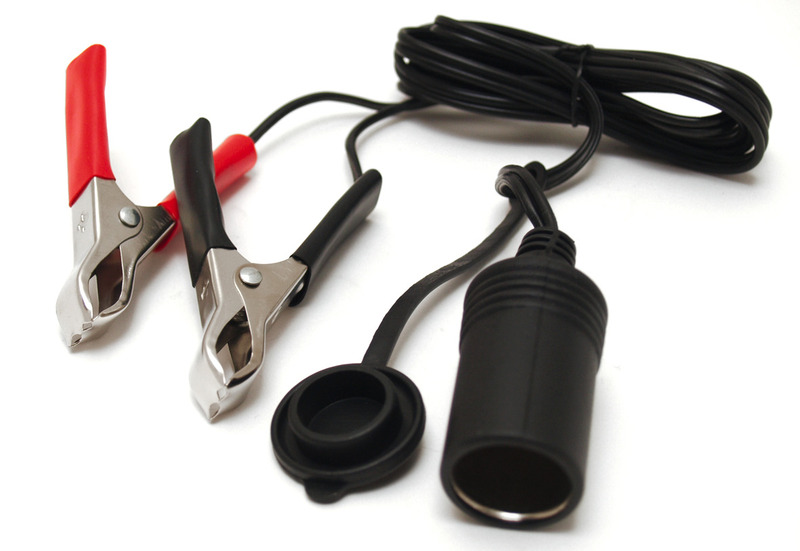 Svorky batérie na individuálne napájanie s 12V / 24V zásuvkou pre cigaretový zapaľovač a s krycou klapkou. Dĺžka kábla 1,4 metra.