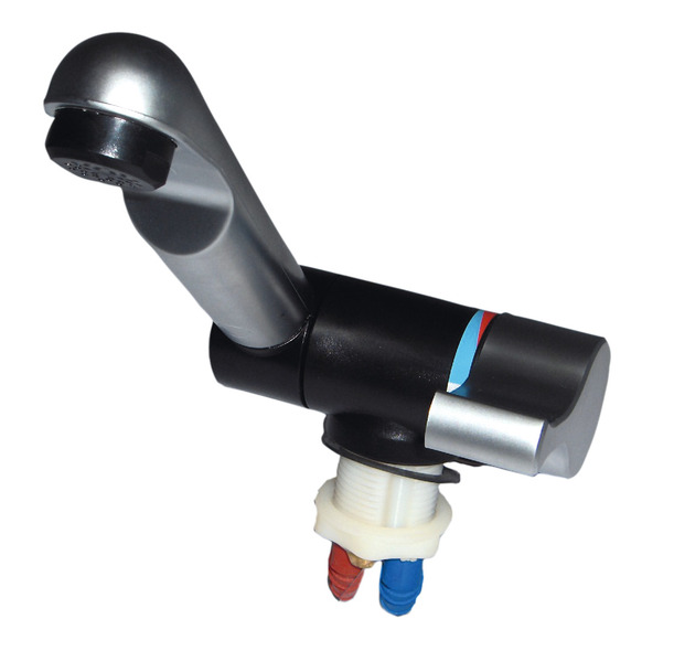 S otočnými a otočnými kohútikmi na teplú a studenú vodu. Ovládanie jednou pákou, nastaviteľné a veľmi pohodlné pre používateľa.