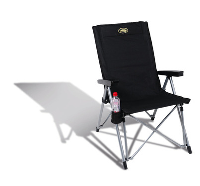 Pohodlne čalúnená skladacia stolička "LA PALMA DELUXE" boduje optimalizovaným napínacím sedadlom a vysokým operadlom pre väčšie pohodlie. Operadlo je nastaviteľné v 5 polohách.Materiálom je priedušná sieťovina v hornej časti a odolný polyester v spodnej časti, rám je z hliníka s čiernou povrchovou úpravou. Táto skladacia stolička unesie maximálne zaťaženie 120 kg a má praktický držiak na poháre ako ďalšiu funkciu. Súčasťou dodávky je praktická baliaca taška.