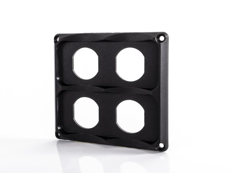 Zabudovaný predný panel, 4 zásuvky na umiestnenie až 4 zásuviek. Individuálne konfigurovateľné so všetkými zásuvkami CARBEST / zásuvkami USB / voltmetrami.Priemer otvoru: ø 29 mm