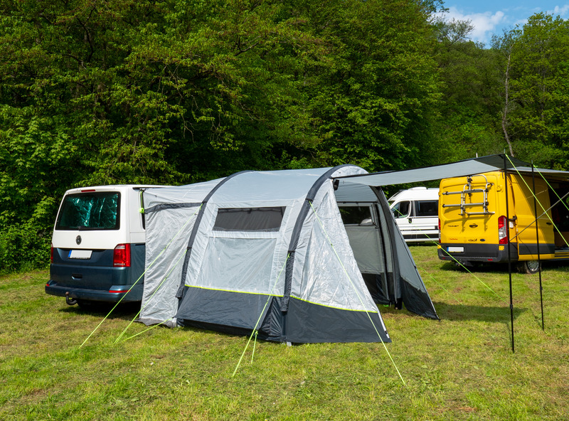 Klasika: markíza s 1 tunelom teraz so vzduchovou technológiou. Veľké predné dvere sú tiež vybavené moskytiérou a možno ich použiť ako markízu. Dvere v bočnej stene s 1/3 moskytiéry a 2/3 priehľadnej PVC fólie. Vzduchová clona do vozidla s dverami na oboch stranách, podlahovou krytinou, moskytiérou v zadnej stene.