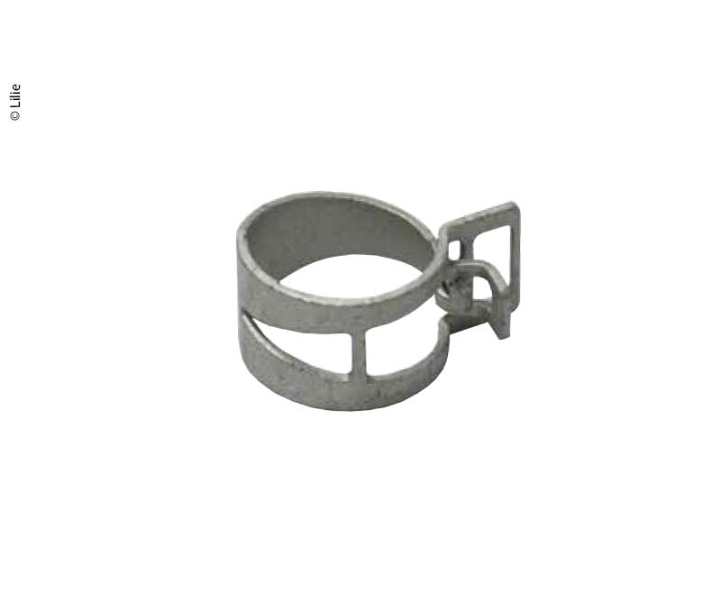 Vyrobené z pružinovej ocele C75S, chránené proti korózii, uzatváracia sila 200-250 Nm . Ideálne sa hodí k hadiciam na pitnú vodu Lilie s priemerom 15 mm. Montáž bez použitia náradia vďaka predpätej svorke. Svorka sa zatvára jednoduchým odblokovaním.