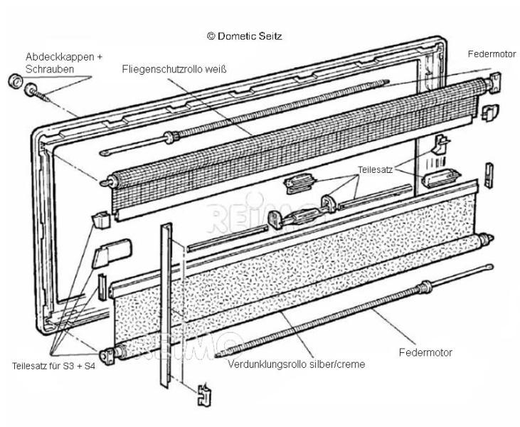 Klasika Dometic. Výklopné alebo posuvné okná S3 a S4. Vnútorný rám Dometic-Seitz kompletne so zatemňovacou žalúziou a sieťkou proti hmyzu vo farbe krémovo biela.