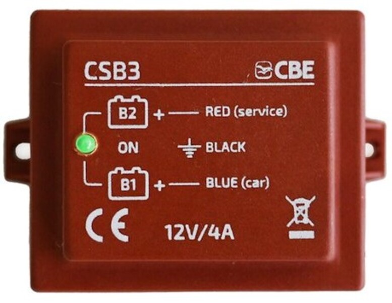 Štartovacia batéria sa nabíja z napájacej batérie, keď je napätie vyššie ako 13,6 V, a pokračuje v nabíjaní, kým napätie v napájacej batérii nie je nižšie ako 12,5 V. Maximálne nabíjacie napätie je 4 A. Indikátor prevádzky prostredníctvom LED.