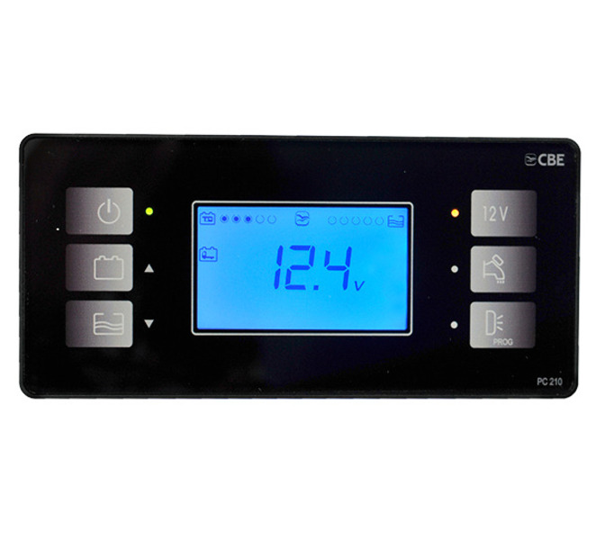 Mikroprocesorom riadený kompletný systém s LED ovládacím panelom na monitorovanie vozidla a spotrebnej batérie (B1-B2), monitorovanie nádrže na čerstvú vodu, alarm pri plnej nádrži na odpadovú vodu, čerpadlo, vonkajšie osvetlenie, relé pre paralelné zapojenie batérií, ovládanie chladničky, poistky, dobíjanie batérie vozidla, monitorovanie a ovládanie ochranného zariadenia batérie, zobrazenie vnútornej a vonkajšej teploty.