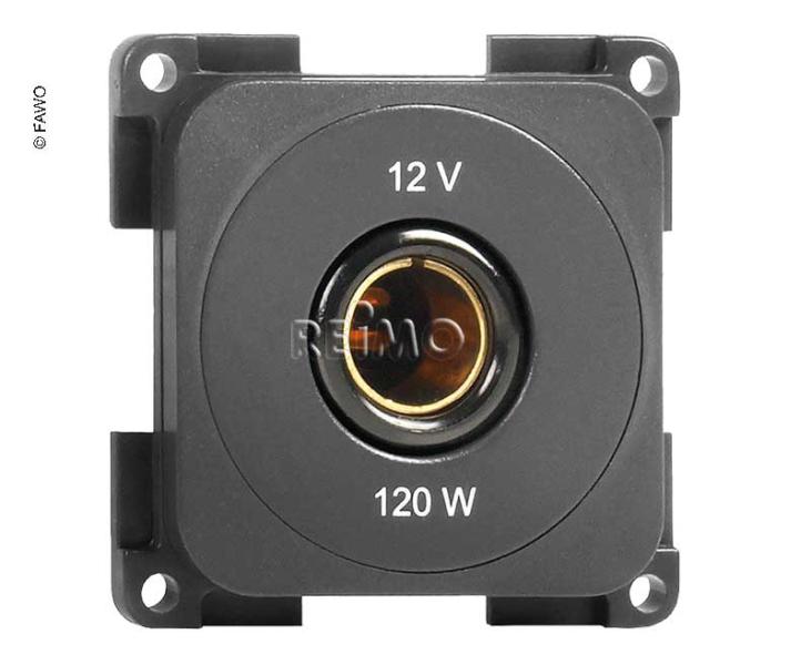 Štandardná zásuvka 12V/120W/10A s možnosťou zaťaženia. Farba: bridlicovo sivá. Voľne (rozbalené).