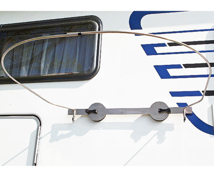 Táto zástena na ochranu súkromia je vhodná na rovné bočné steny. Prísavné dosky sú pevne pripevnené. Vzhľadom na ďalší vývoj a optimalizáciu možností použitia sa vzhľad základnej podpery môže líšiť od zobrazenej fotografie.