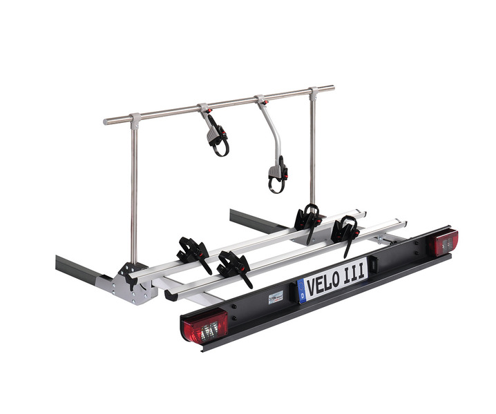 Skladací nosič bicyklov s extrémne nízkou hmotnosťou: iba 16 kg. Špeciálne koľajnice pre e-bicykle s rýchloupínacím uzáverom. Vysoká nosnosť 80 kg. Vhodný pre vozidlo s predĺženým nosným rámom a/alebo podvozkom ALKO. Potrebné sú tieto informácie: Vozidlo, výrobca karosérie, rok výroby, typ!